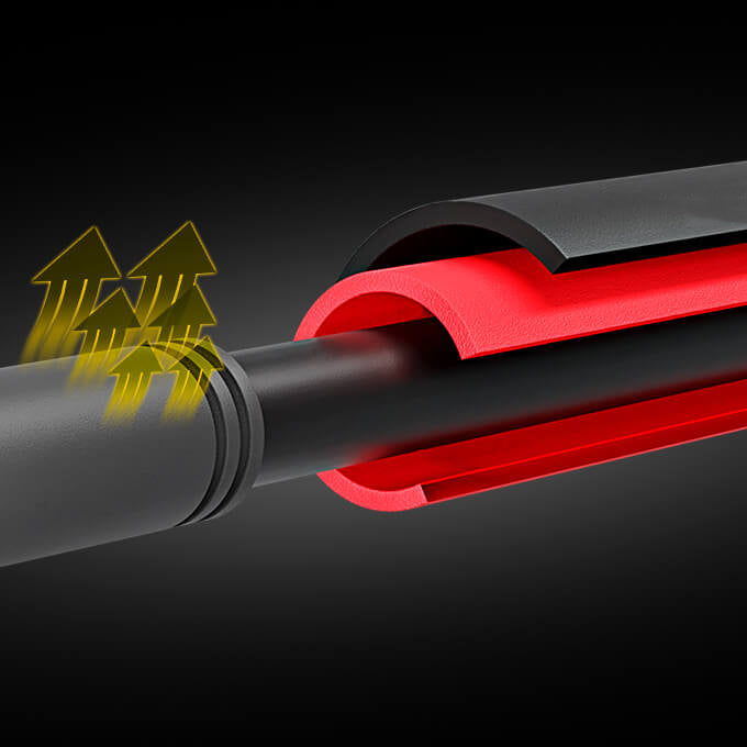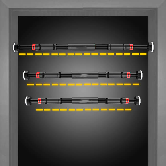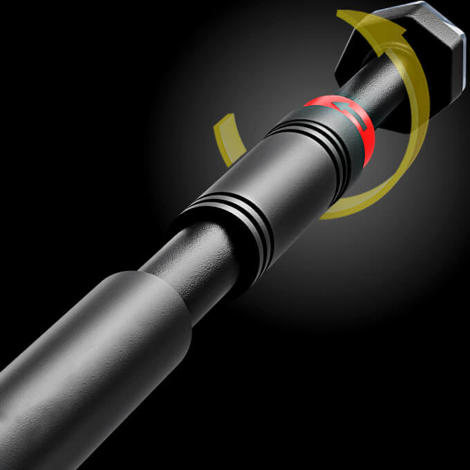 Sans utilisation de vis, la barre se maintient solidement en place grâce à une couche de caoutchouc extra-épaisse, offrant une prise ferme et fiable. Cette conception unique te permet de fixer la barre à différentes hauteurs, selon tes besoins d’entraînement, tout en garantissant une stabilité optimale.
