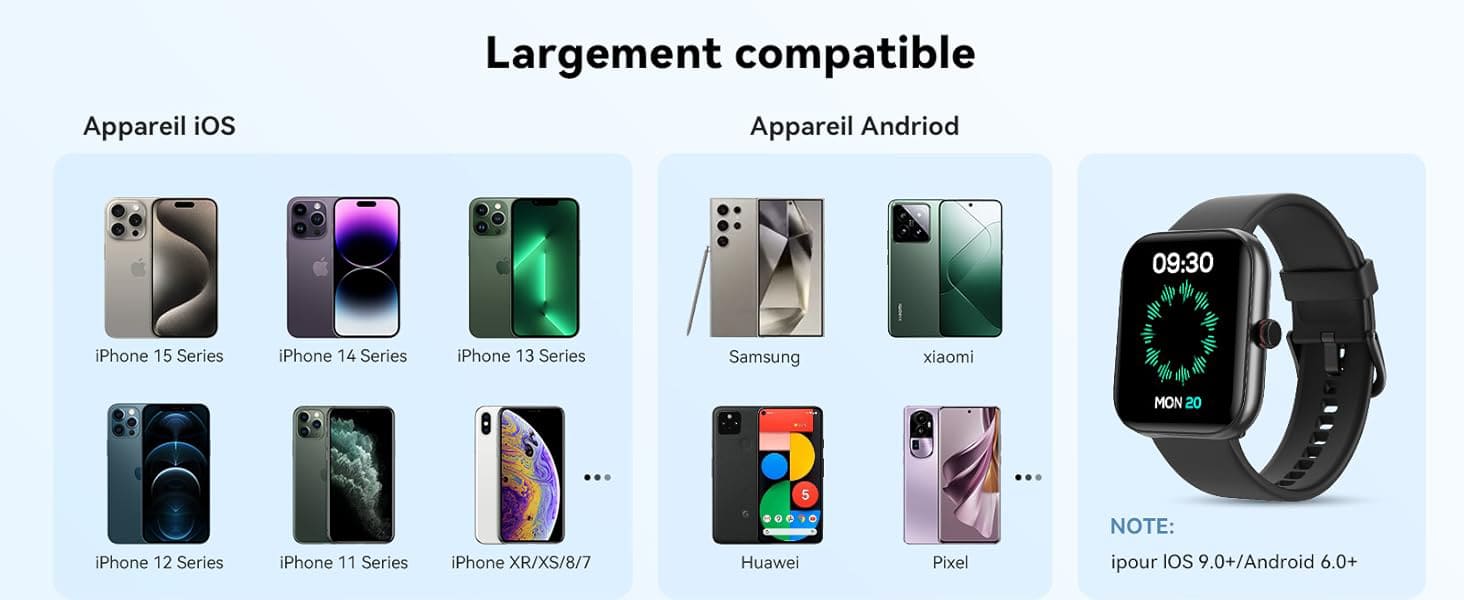 📱 Compatible iOS & Android – Fonctionne avec iOS 9.0+ et Android 6.0+.