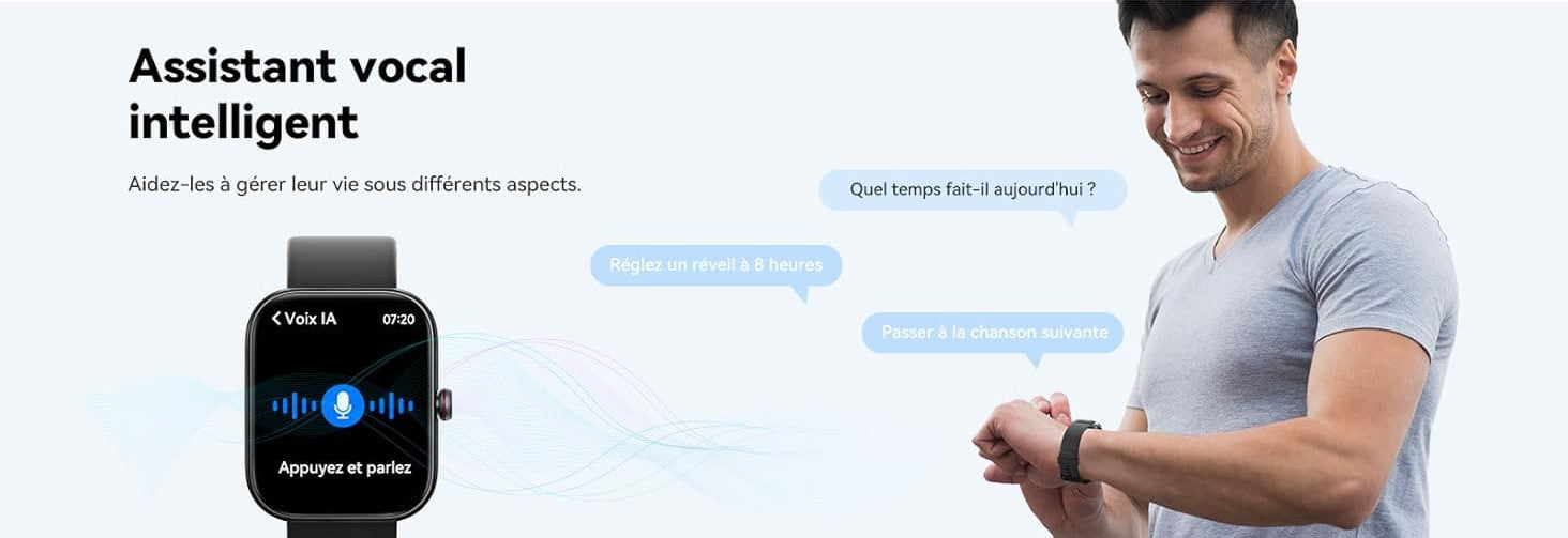 Avec l’Assistant Vocal Intelligent, gérez vos tâches et commandes en toute simplicité, directement depuis votre poignet.