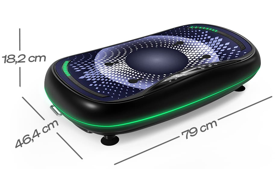 Avec ses dimensions de 79,7 x 46,4 x 18,2 cm, la plateforme vibrante HyperVibe allie performance et praticité.