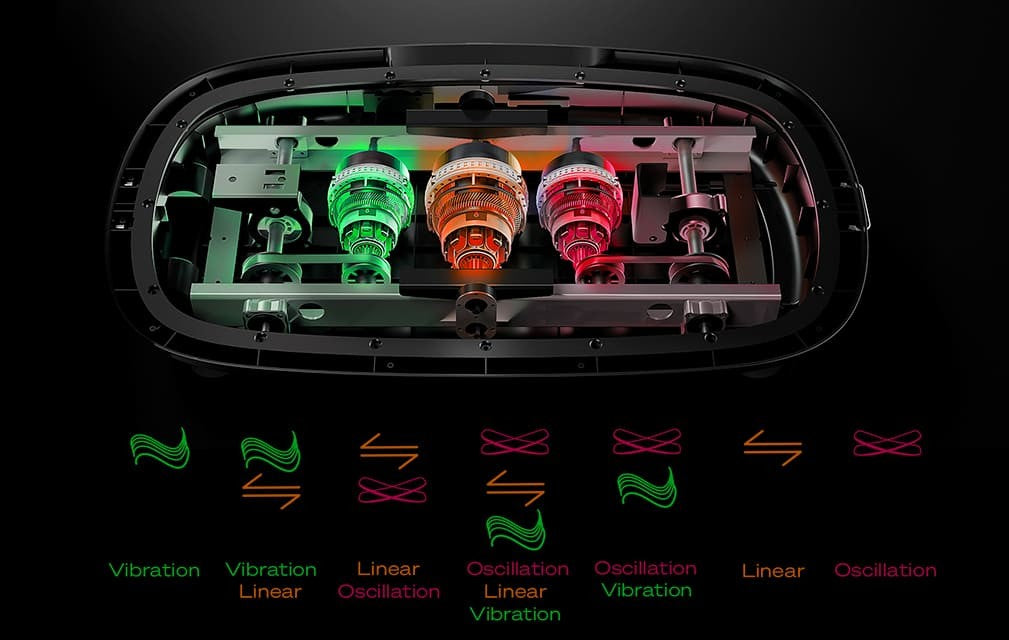 Grâce à ses trois moteurs haute performance, la plateforme vibrante HyperVibe offre une combinaison unique de vibration, oscillation et mouvement linéaire pour un entraînement ultra-efficace.