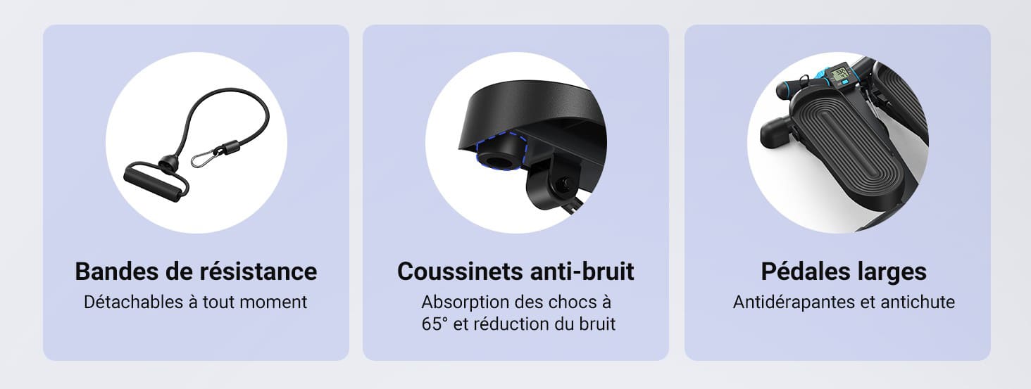 Bandes de résistance – Ajoutez de l’intensité à votre entraînement avec des bandes détachables à tout moment.