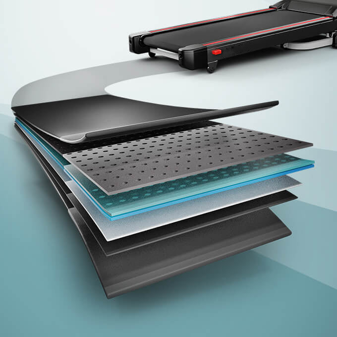 Son système d’amortissement révolutionnaire à 8 zones et sa surface de course ultra-élastique garantissent un entraînement fluide et silencieux, parfait pour la maison.