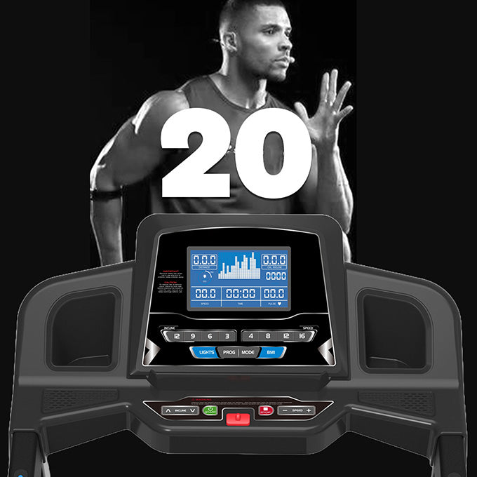 Sa console LCD compatible avec les applications d'entraînement, ses 12 programmes intégrés, son support pour tablette et bouteille, ainsi que son système d'autolubrification garantissent une expérience fluide et agréable. Ajoute à cela une large surface de course à 5 couches pour un confort optimal et un plaisir d'entraînement incomparable.