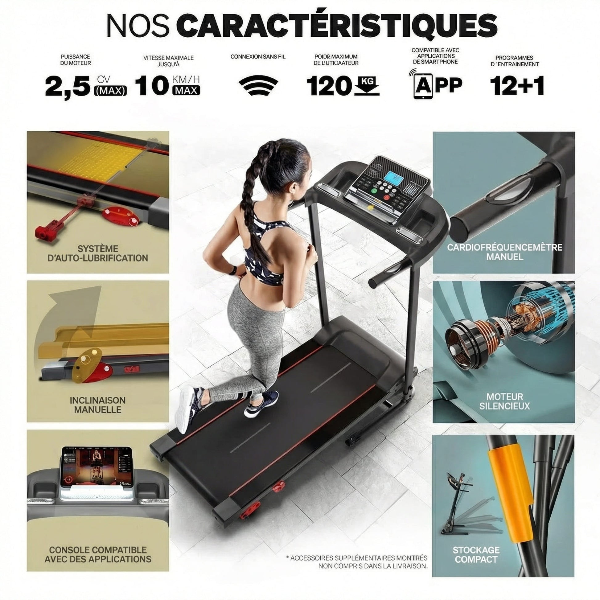 ✔ Connectivité avancée : Contrôlez votre entraînement directement depuis votre smartphone ou Smart TV, en toute simplicité.
