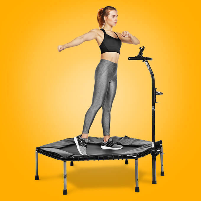 Atteins tes objectifs de fitness en toute légèreté avec AirBeast, le trampoline de fitness conçu pour un entraînement efficace à domicile. Grâce à ses rebonds dynamiques, il protège tes articulations tout en brûlant un maximum de calories et en améliorant ton endurance. Sa suspension ultra-élastique et sa barre de maintien réglable en hauteur offrent une sensation de saut optimale et sécurisée.